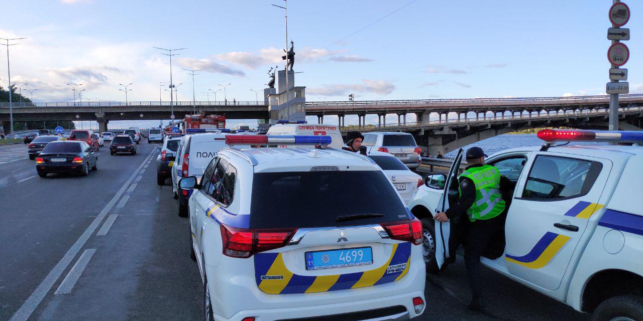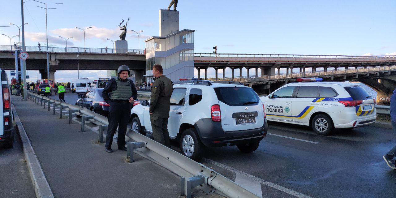 За інформацією правоохоронців, невідомий чоловік вийшов з однієї з автівок з приладом, який нагадує вибуховий пристрій. Він погрожує підірвати міст через Дніпро.