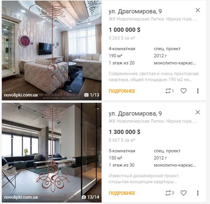 Издание выяснило, что эта квартира находится в элитном жилом комплексе “Новопечерские Липки” на улице Драгомирова, 9. По сведениям одного из порталов о недвижимости, квартиры даже меньшей площадью продаются в этом здесь по ценам от 1 миллиона  долларов США: