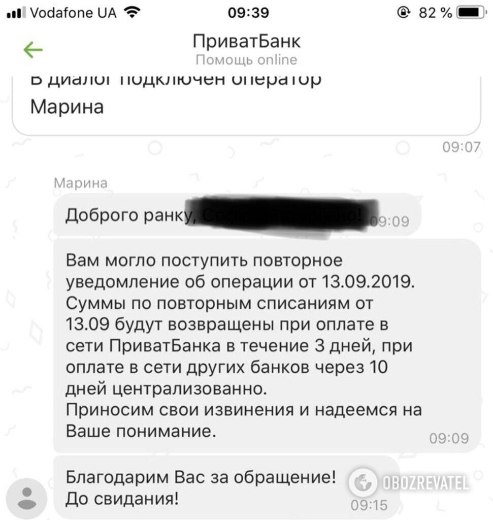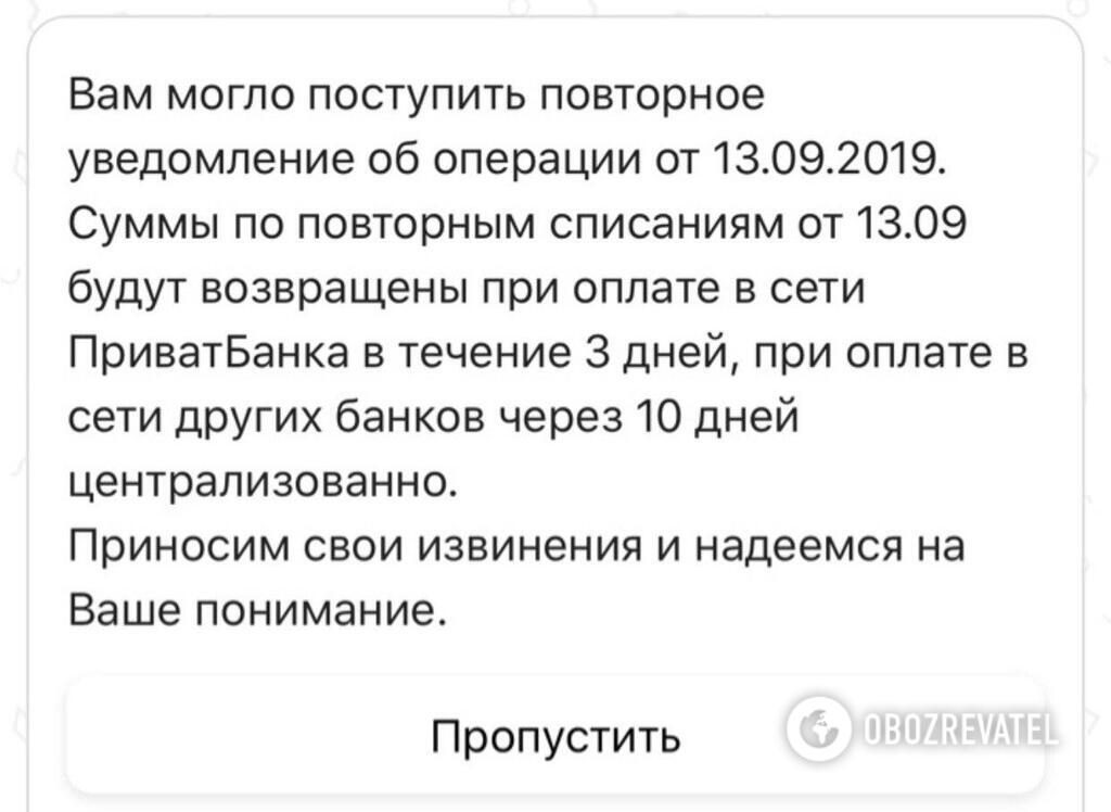 "Я в растерянности прибежала к ним, а у них опять какой-то сбой. Как мне объяснил руководитель отдела, что это не мошенники. С 13 сентября по Украине произошел массовый сбой в ПриватБанке. Поэтому все операции, которые я проводила в тот день, в банке снова осуществили", – отметила потерпевшая.