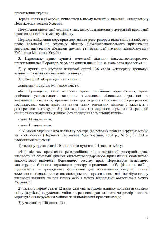 Украинцы с правом постоянного пользования или правом унаследованного владения участком государственной и коммунальной собственности могут взять рассрочку на пять лет по цене, которая соответствует нормативной оценке участков без проведения земельных торгов.