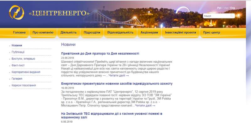О качестве работы Егоровой говорит и то, что последняя новость на официальном сайте связана не с экономическим положением «Центрэнерго», а с поздравлением ко Дню независимости (23 августа 2019 года).