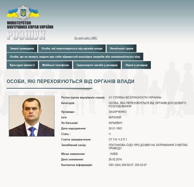 Захарченка розшукують