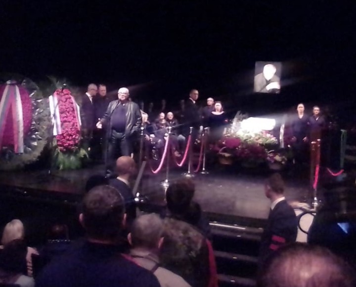 На сцене Геннадий Хазанов: "Странно приходить в этот театр не на премьеру, а на трагическон событие. Я 54 года знал Марка Анатольевича. Я да Марк Розовский были свидетелями его первых шагов в студенческом театре МГУ. 25 лет назад на этой сцене провожали Евгения Леонова. Я поймал тогда взгляд Захарова. Ему эта мизансцена не нравилась. Однажды мастер дал мне совет :"Помните, покороче". Я сегодня хочу обратиться к Марку Анатольевичу: "Слишком коротко".