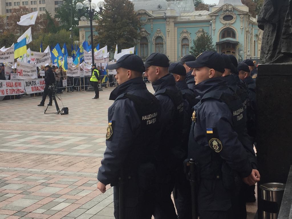 Утром в четверг, 3 октября, в Киеве под зданием Верховной Рады проходит митинг против продажи земли иностранцам, который организовала Всеукраинская Аграрная Рада.