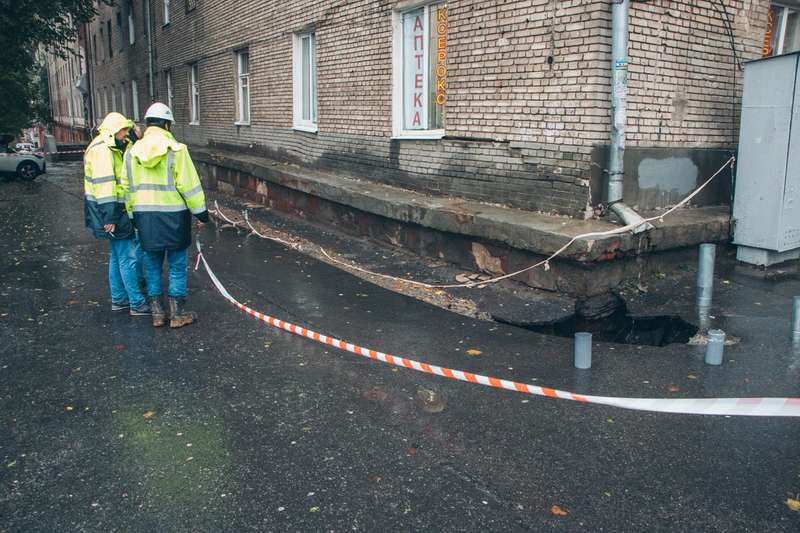 5 октября, под домом №17 на проспекте Яворницкого в Днепре, в самом центре города, рухнул асфальт под зданием общежития. Жителей дома эвакуировали. Все примыкающие дороги к аварийному зданию перекрыты.