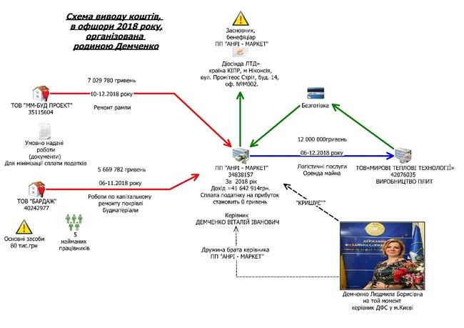 Родина головного столичного фіскала створила схему виведення фіктивного ПДВ за рахунок інших платників податків. Зареєстровано 3 кримінальних провадження, але вони ніяк не розслідуються. За попередньої влади Демченко пов’язували з пропрезидентською командою, але зміна влади ніяк не вплинула на її статус. Вона й надалі продовжує працювати та покривати свої "насиджені" корупційні схеми без перешкод.