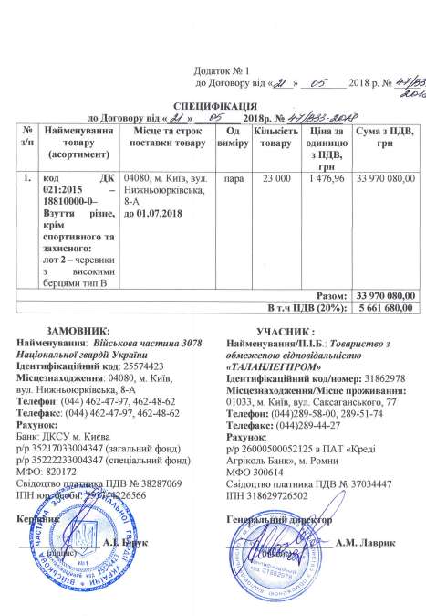 Цены на обувь выросли: 25 тыс пар демисезонных ботинок по все тем же техническим условиям ТУ 15.2-072-00034022:2016 были проданы по 1815 грн за пару. А 13 тыс пар летних ботинок силовики взяли по цене 1596 грн.