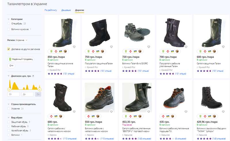 Интересно, что в интернете самая дорогая обувь «Таланлегпрома» продается в розницу всего за 850 гривен. Это зимние защитные сапоги. Другие виды обуви от этого производителя стоят еще дешевле: