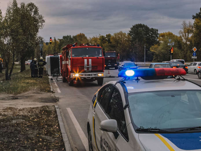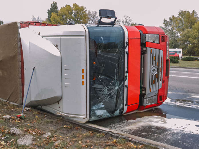 В Днепре перевернулась фура, перевозившая груз. По трассе растеклось топливо