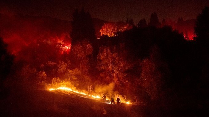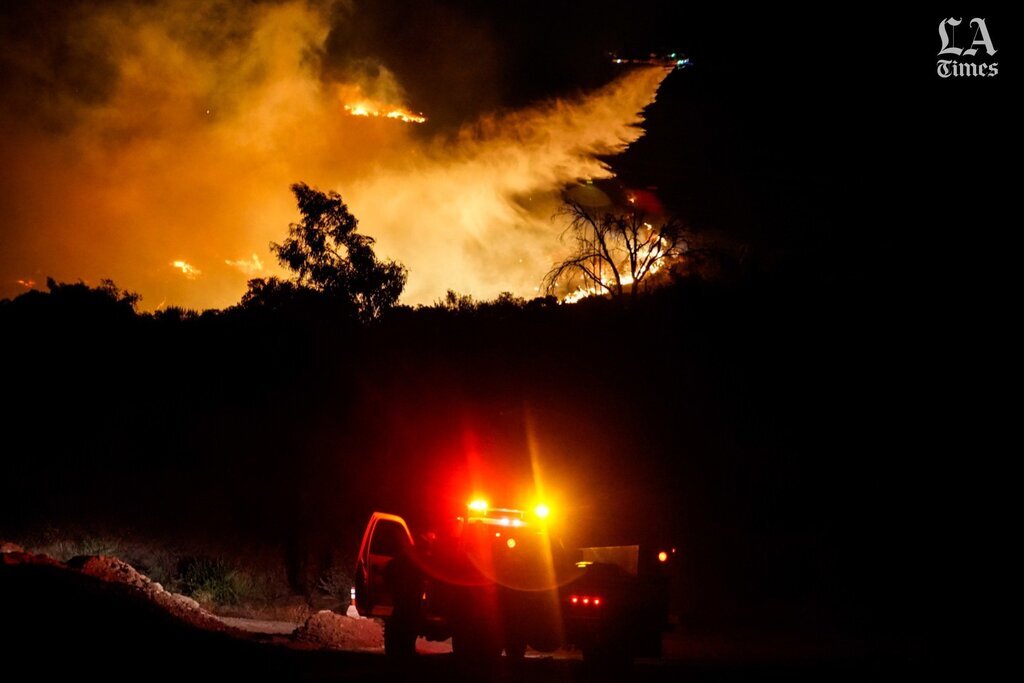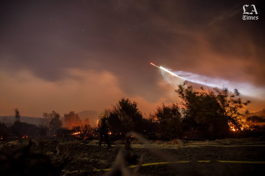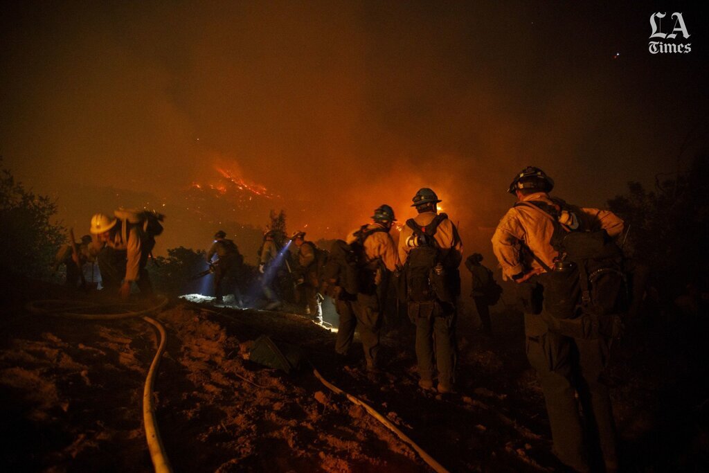 #SaddleridgeFire Los Angeles County Firefighters working all out! A physical and mental delivery from Camp 12 personnel creating a fuel break in an extreme fire behavior environment. This highlights the challenges of night firefighting @LACOFD @Angeles_NF @LAFD @LASDHQ @LAPDHQ pic.twitter.com/ngQ0sVx90F