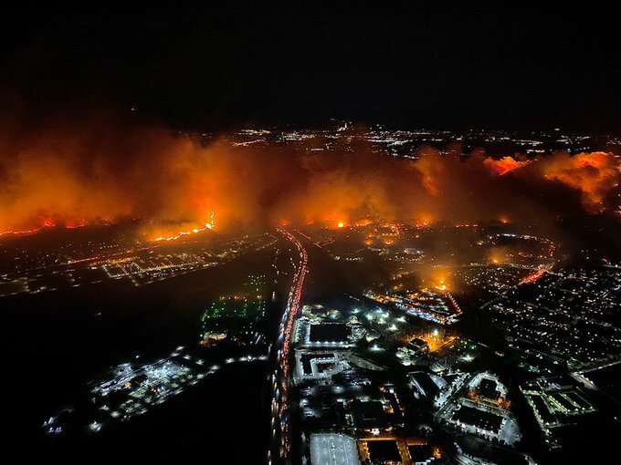 Aerial footage shows the scope of the Saddleridge Fire, which has prompted evacuation orders for tens of thousands of people in the northern Los Angeles area. The blaze exploded to over 4,000 acres overnight https://t.co/vlMhg8vh3k
