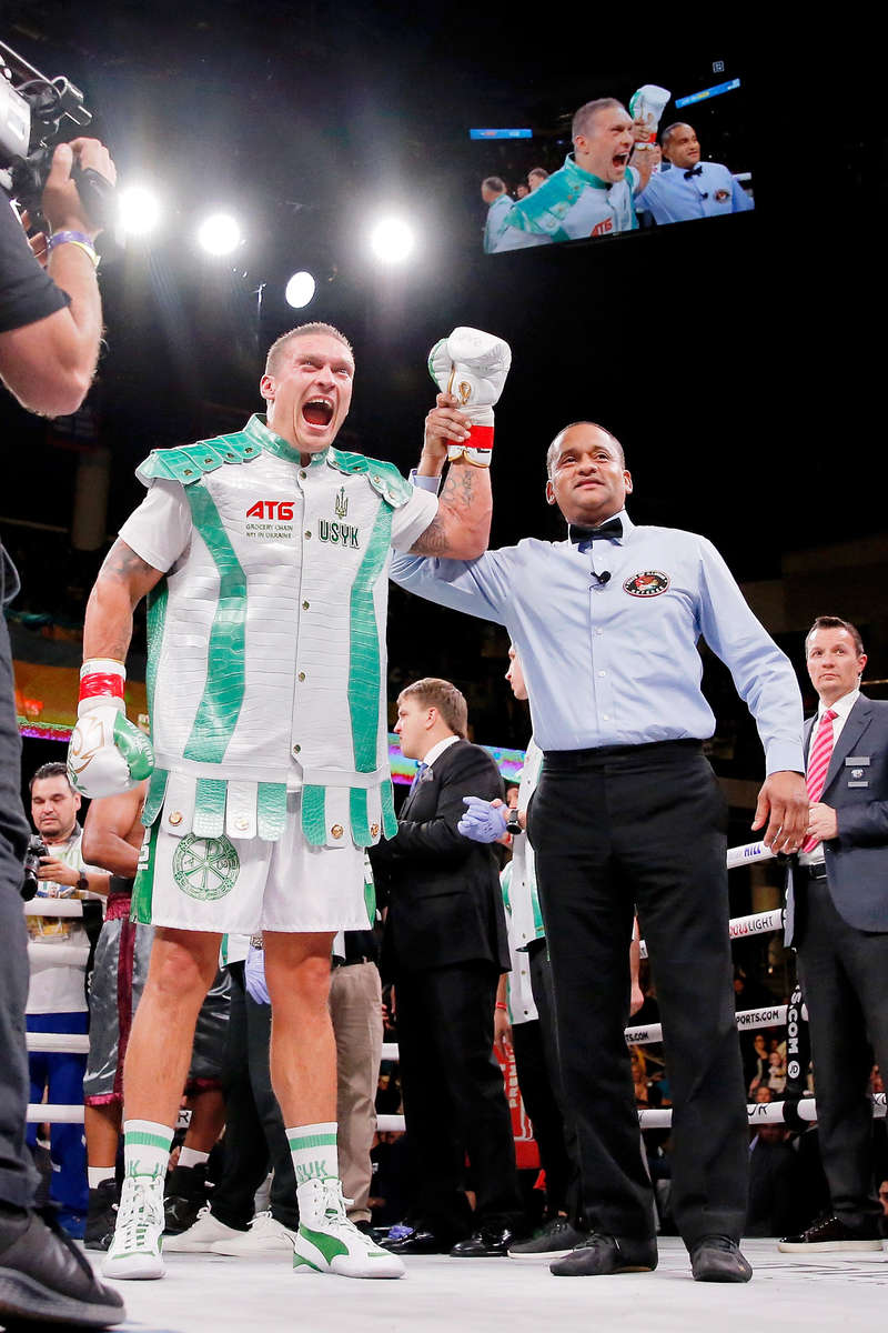 Кстати, одним из первых Усика с победой поздравил президент Украины Владимир Зеленский. Глава страны позвонил Усику в раздевалку, а тот заявил, что "служит народу Украины".