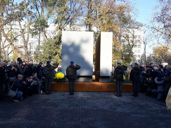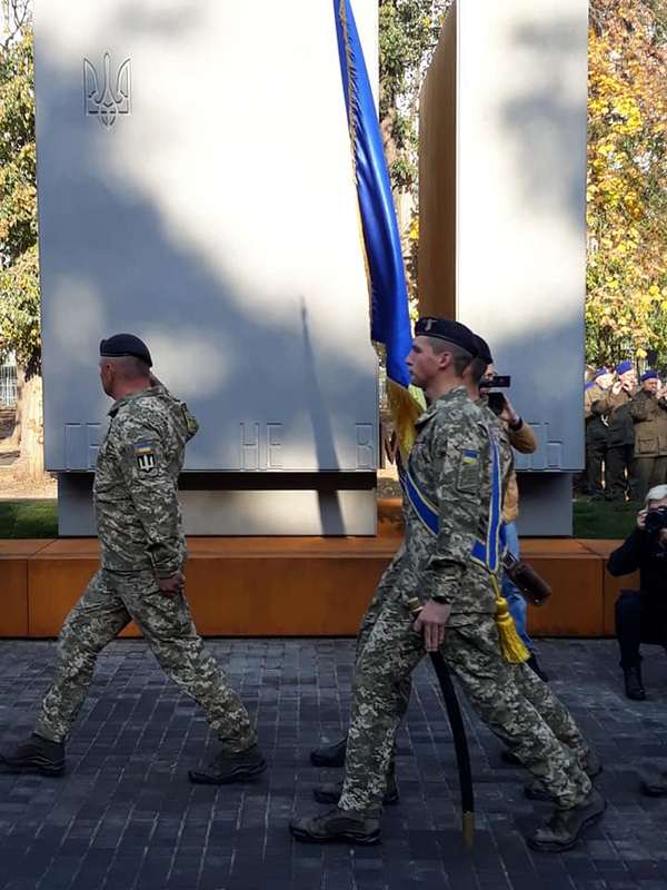 В День защитника Украины в Харькове торжественно открыли памятник украинским военным, воевавшим за целостность страны. Фото монумента опубликовано на странице харьковского филиала Украинского института национальной памяти в Facebook.