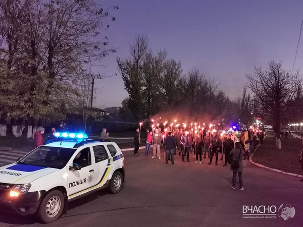 Донецкие патриоты прошли в зажженными факелами по улицам Покровска.