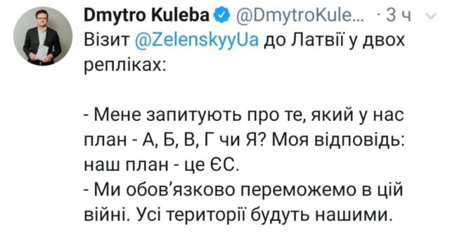 Кулеба подытожил визит украинского лидера Владимира Зеленского лаконичным постом в Twitter, буквально «в двух репликах»: