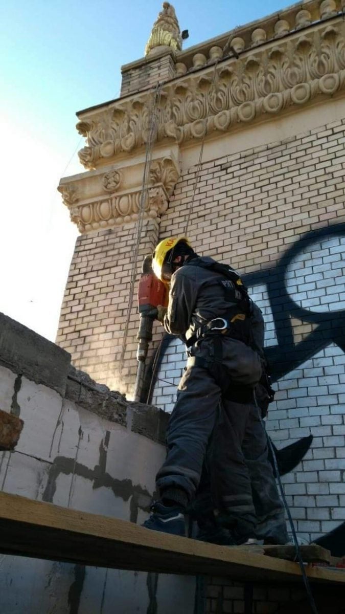 О том, что на здании разбирают надстройку, сообщает и журналист Александр Салиженко в Facebook. По его словам, на месте работает также полиция, а спасатели оградили пешеходную часть возле здания.