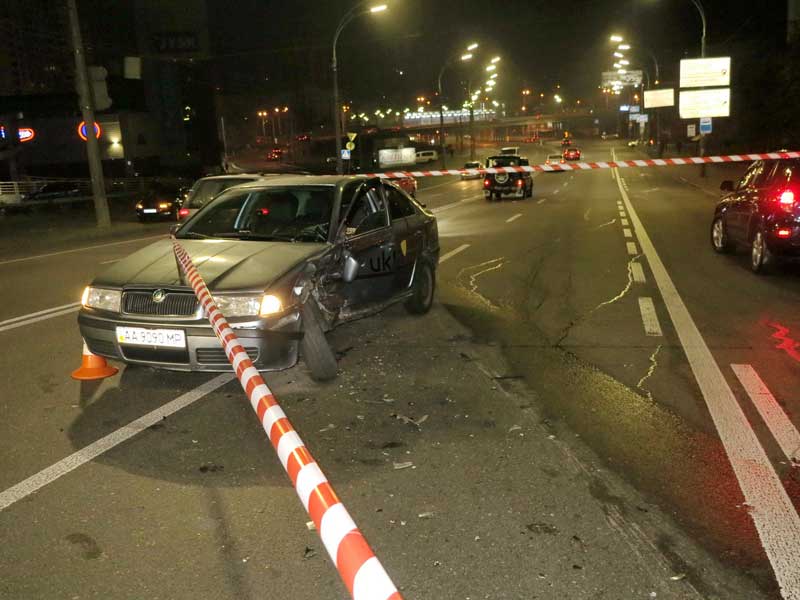 Ближе к полуночи в пятницу, накануне выходных, на улице Гетьмана, неподалеку от Индустриального моста в столице произошло столкновение двух легковушек — Škoda и Mazda.