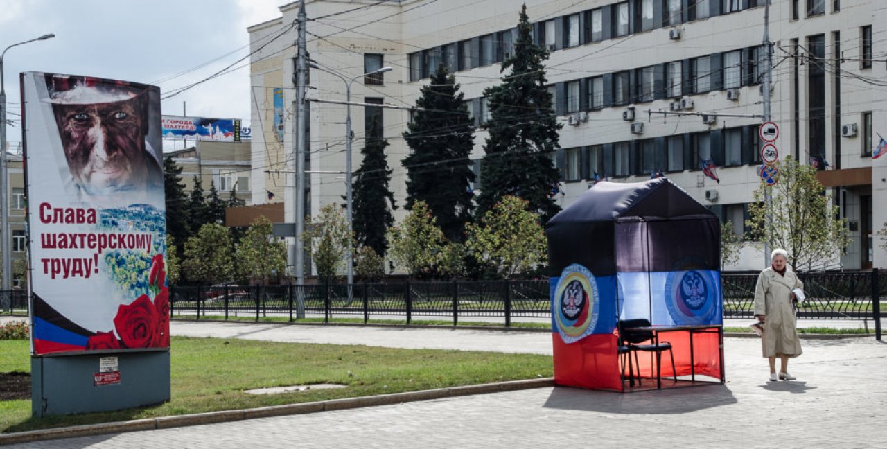 Рекламный плакат в центре Донецка / Фото: Томаш Фьорро