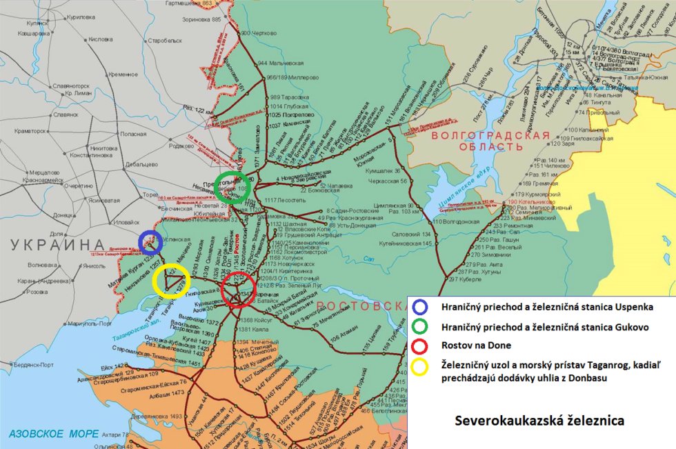 Карта железных дорог юго-запада России на границе с оккупированным Донбассом. / Фото: dennikn.sk