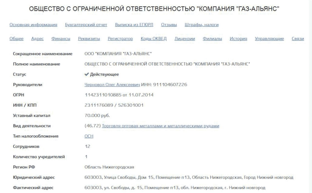 Регистрационная информация о компании "Газ-Альянс", которую контролирует Сергей Курченко / Фото: https://dennikn.sk