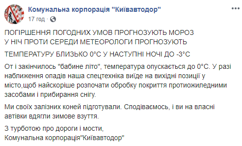 В коммунальной корпорации "Киевавтодор" также напомнили о том, что пришло время "переобувать" авто.