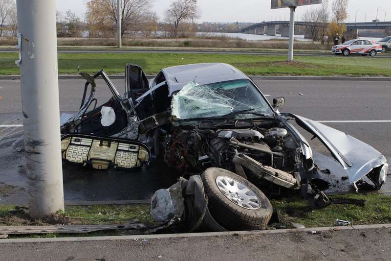 1 ноября, около 8:50, в Днепре на Набережной Победы под Южным мостом автомобиль BMW влетел в столб. В салоне, помимо водителя, находились трое детей.