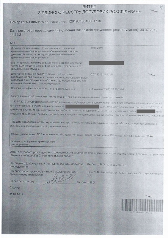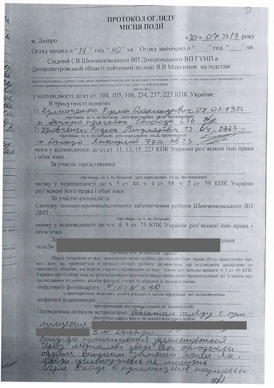 В частности, речь идет о преступной группе, в которую входит начальник райотдела полиции Шевченковского (Бабушкинского) района города Днепр Н. Ткаченко, его первый заместитель О. Волынец и следователь В. Якубенко.