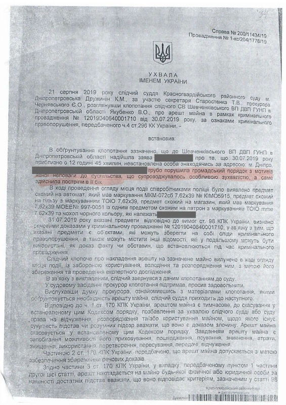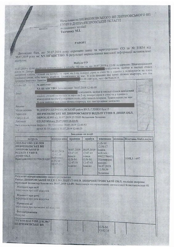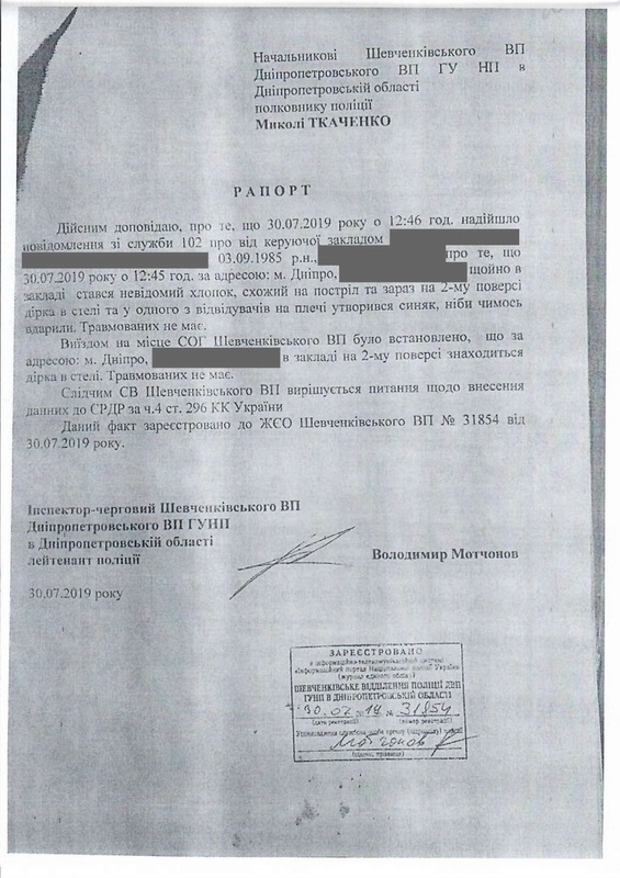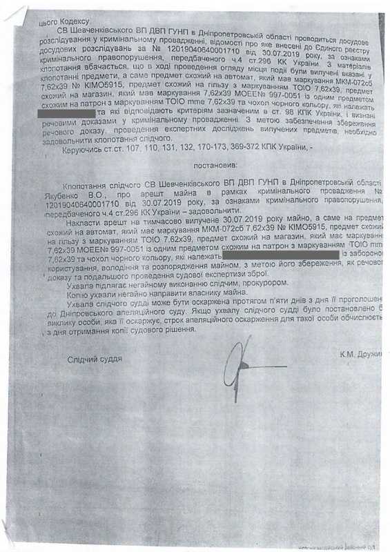Когда владельцы помещения на нижнем этаже обнаружили дырку в потолке, они позвонили в полицию. На место происшествия выехали представители райотдела, включая Н. Ткаченко и О. Волынец. Гражданин П. добровольно впустил их в свою квартиру, предъявил карабин и документы о его регистрации. Полицейские удостоверились, что это был одиночный случайный выстрел в пол, без реальной угрозы жизни и здоровью окружающих. Владельцам нижнего помещения были принесены извинения и заверения в том, ущерб от дырки в полу и потолке будет компенсирован, что и было в последствие сделано. Полицейские опросили очевидцев и свидетелей и составили протокол. По закону гражданину П. предстояло выплатить административный штраф в размере 850 грн и инцидент, казалось бы, был исчерпан. Однако, здесь криминальная история только начинается…