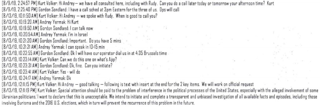 Кроме того, появилась переписка между помощником Зеленского Андреем Ермаком и Волкером, в которой они согласовывали текст заявления и отдельные формулировки.