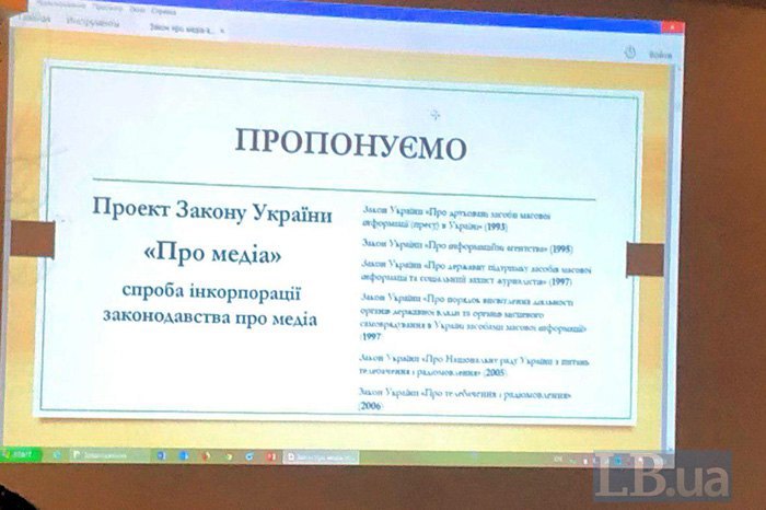 Этим законопроектом предлагается также законы о медиа, которые действуют объединить, а также ограничить монополию и запретить россиянам владеть украинскими СМИ.