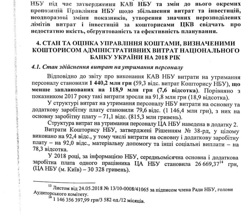 В структуре НБУ создан юридический департамент, который насчитывает более 80 сотрудников. Но вместе с этим, затраты НБУ на юридические и консультационные услуги, которые предоставлялись уже нашумевшими компаниями «Астерс Консалт» и AlixPartners Services, для реализации утвержденной стратегии в 2018 году, составили более 250млн гривен, либо 74% статьи «Другие операционные затраты». Это официальное заключение Счетной палаты Украины, после проведенной проверки!