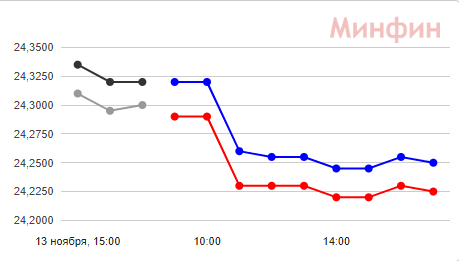 15 ноября доллар продолжает дешеветь. Нацбанк опустил курс американской валюты на сегодня. Межбанк вчера закрылся с котировками в районе 24,22-24,27 грн.
