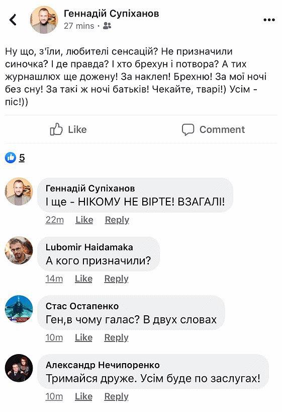 И вот вчера Супиханов-младший (тот самый сын аграрного министра в правительстве Януковича и претендент на нового главу «Агрофонда» разразился постом, что все решено.