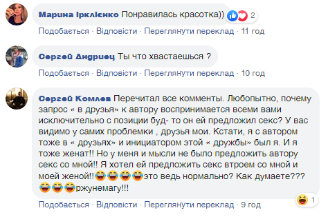 Так, под одним из фото пользовательницы Facebook он оставил сообщение: "Запрос прими (в друзья в соцсети. – Ред.)".