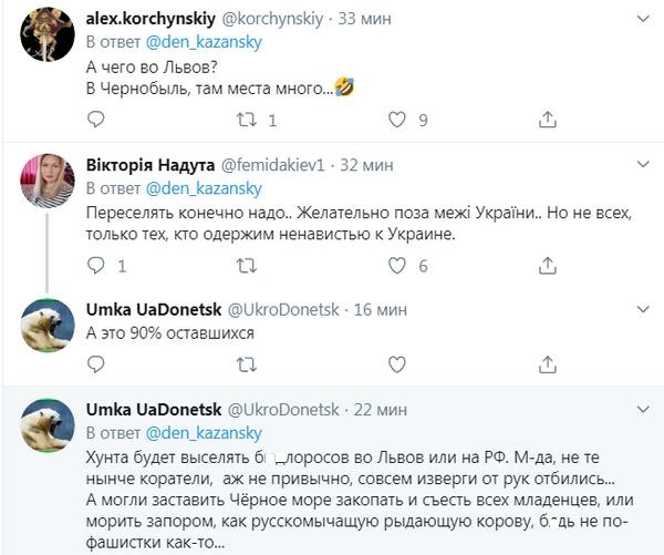Тех, кто знает украинский язык, якобы трогать не будут или отправят, по ее словам, в лучшем случае, в Россию. Остальных насильственно вывезут во Львов «на перевоспитание к патриотам и бандеровцам».