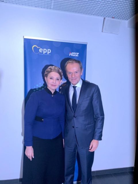 На свою страничку в Facebook нардеп выложила фото из Загреба (Хорватия), на которых она позирует со старой-доброй косой на голове. Рядом с ней на снимках можно увидеть президента Евросовета Дональда Туска.