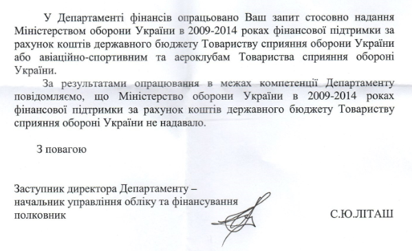 Однак, на відміну від Мінмолодьспорту, Міністерство оборони відповіло, що жодної бюджетної копійки на фінансування ТСОУ не виділялось.