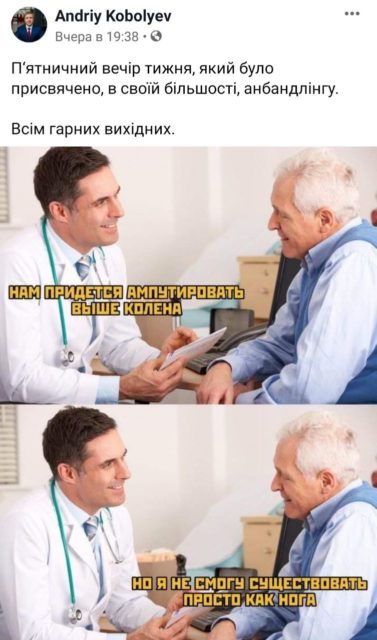 После Коболев подвел итог рабочей недели, опубликовал мем, который сравнил с анбандингом.