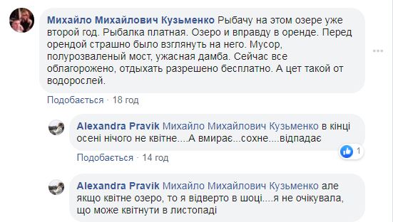 «Озеро в Горенке, улица Шевченко», — написала в соцсетях местная жительница Александра Правик, выложившая фотографии озера в группе «Горенка» в Fasebook.