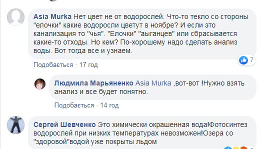Интернет-пользователи, оставившие комментарии под этим постом, не пришли к единому мнению о том, что стало причиной изменения цвета воды. Одни сетовали на теплую осень и водоросли, другие же утверждали, что на улице давно холодно, и что во всем виноваты ядовитые сбросы.