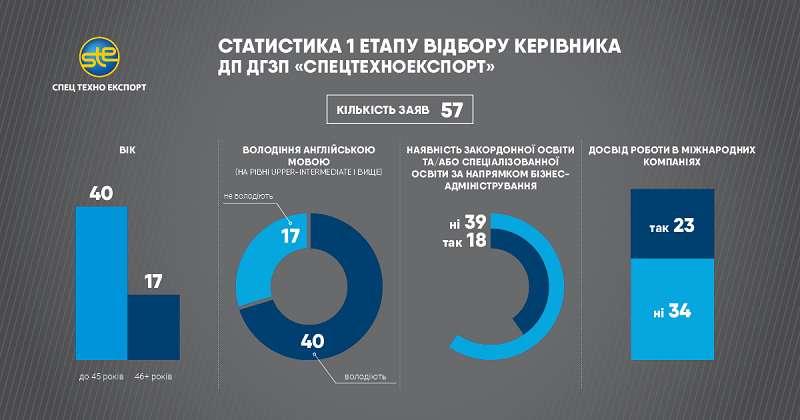 Государственный концерн "Укроборонпром" 23 октября 2019 года уволил руководителей двух крупнейших государственных предприятий по экспорту и импорту вооружения – "Укрспецэкспорт" и "Спецтехноэкспорт" и начал процесс отбора новых руководителей, на должность директора "Укрспецэкспорт" подало заявки 48 соискателей, а возглавить "Спецтехноэкспорт" желают 57 кандидатов.