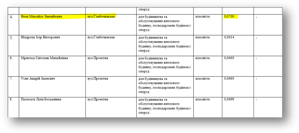 Так в прошлом году Вовк Михаил Зиновьевич получил земельный участок 0,07 Га на улице Глубочанской в микрорайоне Тернополя «Пронятин» с живописным видом на Тернопольское озеро и элитными соседями. Рыночная стоимость земли в таком месте стоит от 2000 долларов за сотку.