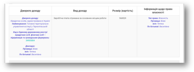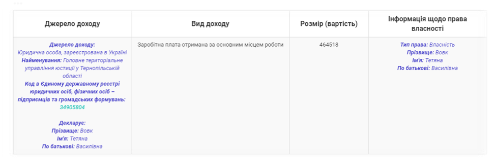 Но не будучи ни шахтером, ни врачом, ни пожарным, не рискуя собственной жизнью и работая в комфортных условиях, таким нехитрым способом за 2018 госпожа Вовк получила уже 568 529 грн дохода по хорошо отлаженной схеме.