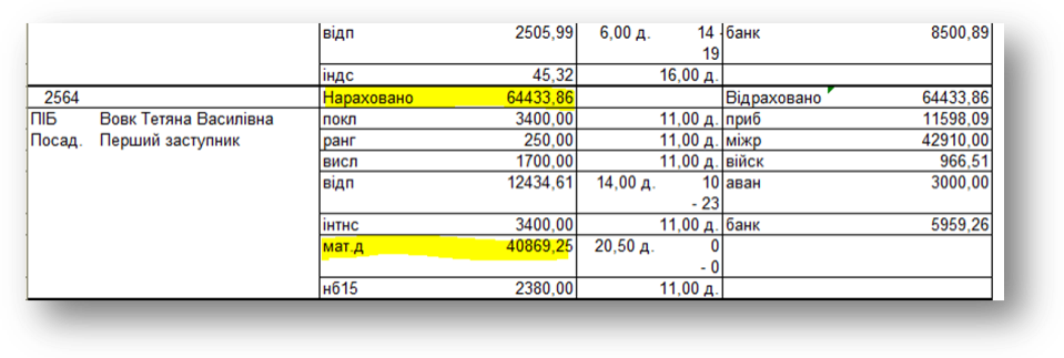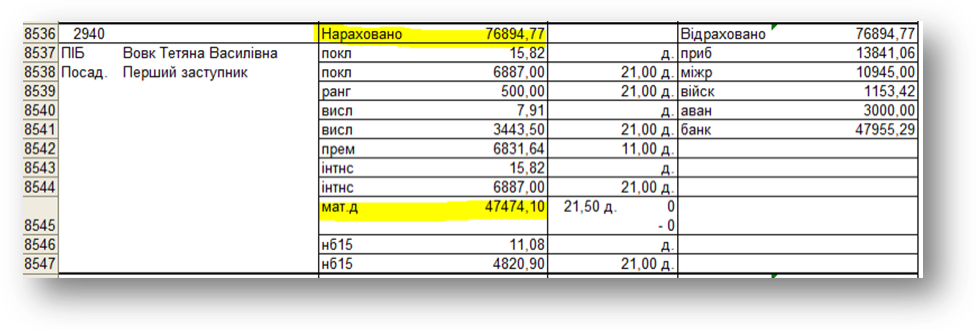Как видно из зарплатной ведомости, кроме оклада Татьяна Вовк ежемесячно получала премии, надбавки за выслугу лет, ранг и интенсивность, которые суммарно составляли от 300% до иногда 500% размера ежемесячного оклада чиновницы, что и позволило ей в итоге получить от налогоплательщиков доход в размере 464 518 грн за 2017 …