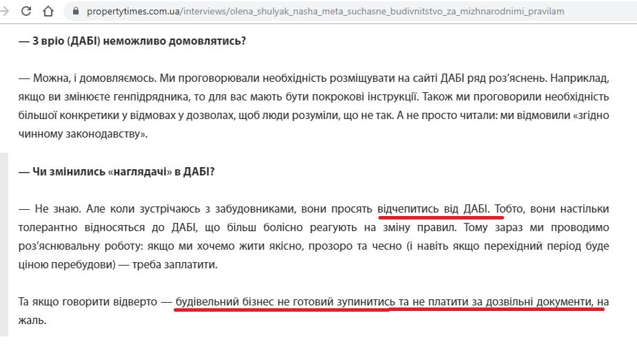 «Система архитектурно-строительного контроля и надзора искусственно тормозит развитие строительной отрасли. Такая ситуация негативно отражается на привлечении инвестиций в рынок недвижимости Украины, сдерживает рост валового внутреннего продукта, создает коррупционный фон в работе строительной отрасли », - заявляет сооснователь и управляющий партнер Украинского клуба недвижимости Ольга Соловей.