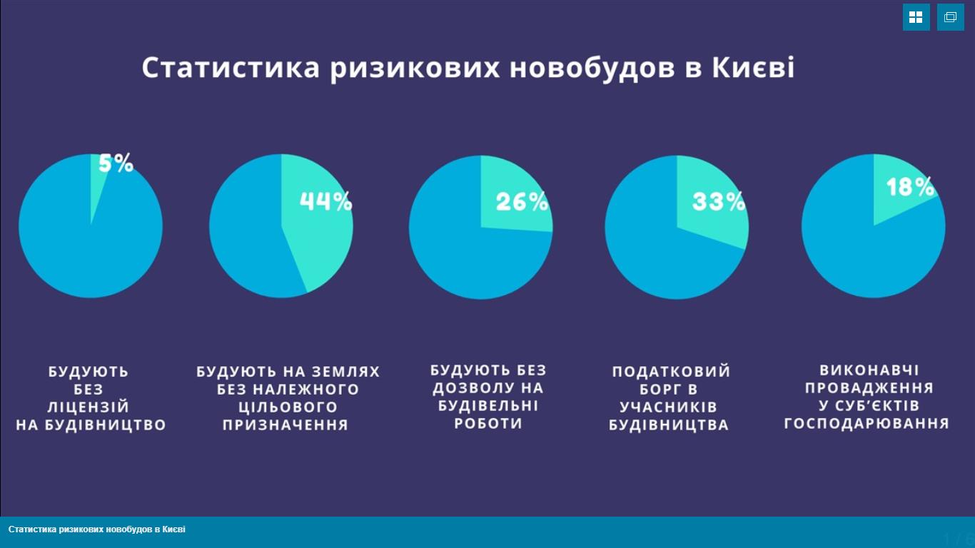 При этом только в Киеве эксперты насчитали 208 рисковых объектов строительства, что составляет 55% от общего количества возводимых объектов. Большинство незаконных строек локализируется в Голосеевском, Печерском и Дарницком районах столицы.