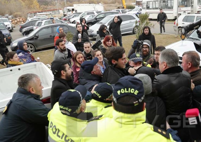 Близько 30 опозиціонерів намагалися влаштувати “коридор ганьби” місцевому мажоритарному депутату Димитрію Хундадзе, однак на опозиційних активістів напали молоді люди і силою розігнали їх.