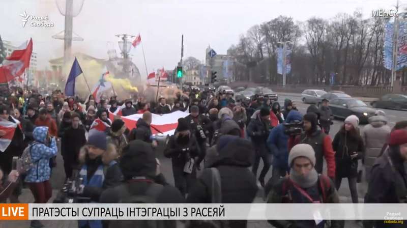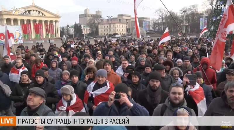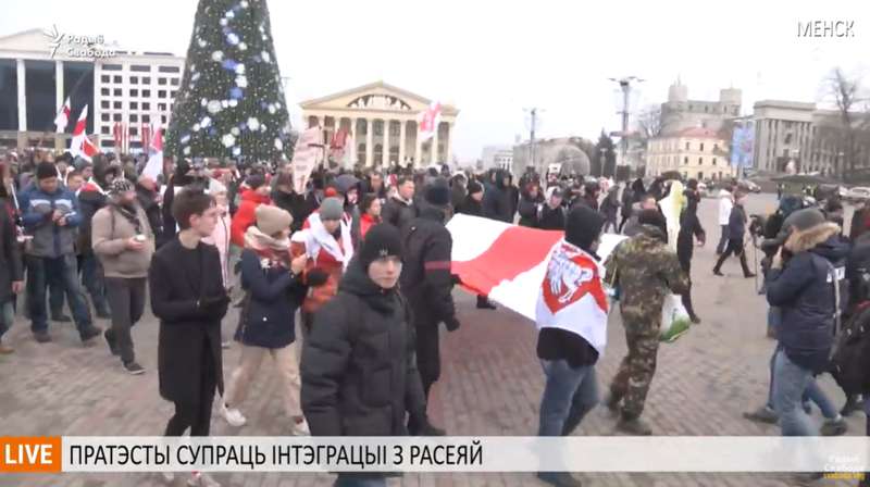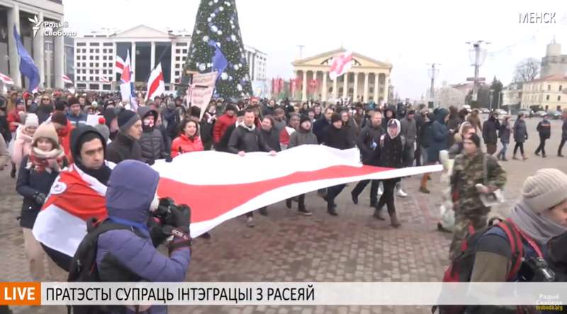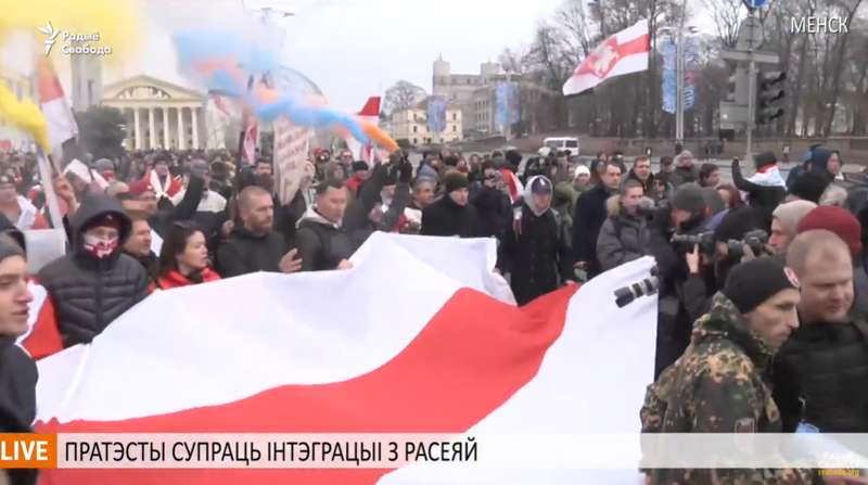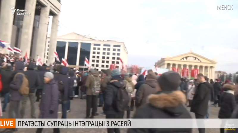 Граждане Беларуси вышли на акцию протеста против интеграции с Россией. В субботу, 7 декабря, более тысячи людей собрались в центре Минска, чтобы защитить независимость государства, передает "Радио Свобода".