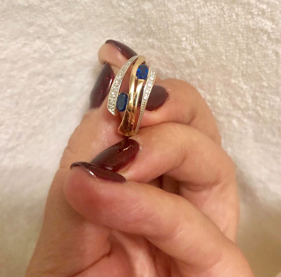 Женщина отнесла украшение в ломбард. Там сообщили, что кольцо сделано из золота и в него вставлены сапфиры и бриллианты.