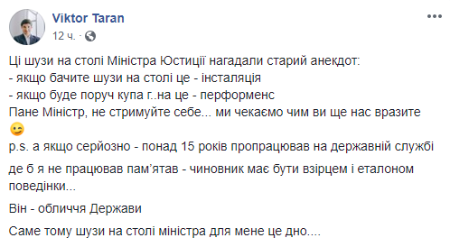 Политолог Виктор Таран считает, что обувь на столе министра – это дно.